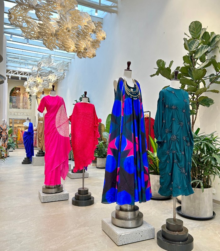 Follow the staircases on either side of the skylight to go up to the mezzanine which houses the Ogaan pop-up space featuring a mix of our favourite contemporary and modern-Indian labels, with pop-up spaces from 431–88 by Shweta Kapur, Chandrima, Lajjoo and Kora as well as collections from Bodice, Reik and so many more!