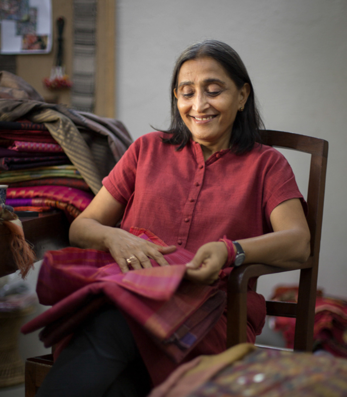 A 1980 graduate of the National Institute of Design in Ahmedabad, India, Neeru made her first commercial breakthrough in 1989 with her signature ‘First Design’, a black and tussar weave, which was acclaimed internationally. Widely covered by the media as a designer who had achieved a rare synergy between classic textile craft and contemporary design, her work is often described as ‘contemporary classic. [/read]